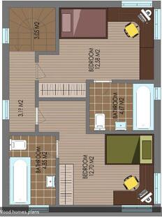 此款木屋設(shè)計為兩層樓,木房屋總面積168米²;一樓房子有寬敞的陽臺和三個浴室。房子套件包括屋頂;二樓包括外部和內(nèi)部的墻壁,木制的雙層玻璃窗,門和樓梯;房頂蓋別墅專用玻纖瓦…
